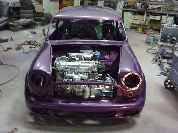 quarter glass. Welded the Starlet fuel tank itothe boot, reshaped the number-plate